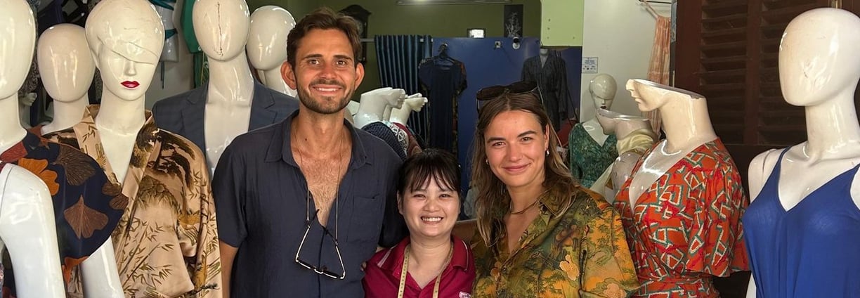 Unsere Schneiderei befindet sich in Hoi An, Vietnam, wo wir mit einer familiengeführten Schneiderei zusammenarbeiten, um exquisite Seidenkimonos zu kreieren.